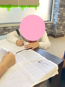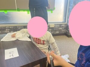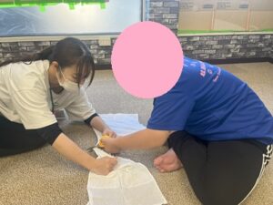 宿題を終わらせてから遊ぶお友達や、その時間で専門的支援を行っていますが今日はスタッフのお手伝いをお願いしました。
