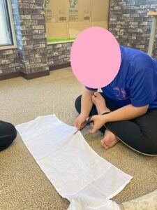 ハサミが裁縫用じゃなかったので少し切りづらかったのですが、ゆっくりと丁寧にやってくれました♪