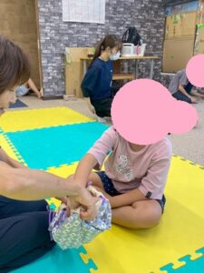最後はスタッフが見せた物を袋に入れて、同じ物を探します。