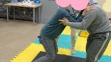 以前はマットを出すとゴロゴロしてしまうお友達でしたが、久しぶりにマットを出すと自分から仰向けになりボールをキャッチ(^^♪