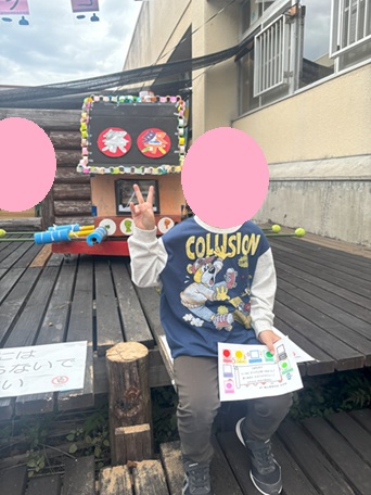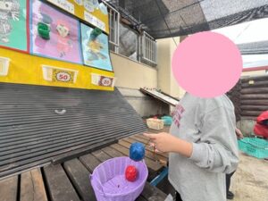 ボール投げでは、点数が付いていて高得点を狙ってポイ♪\(^o^)/