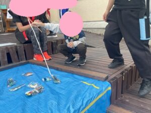 力が強すぎるとカゴに入らないので、お友達も加減して投げていました!