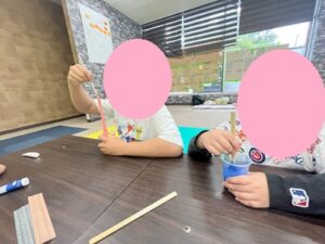 スタッフも一緒に作り、お友達の前で伸ばして見せると