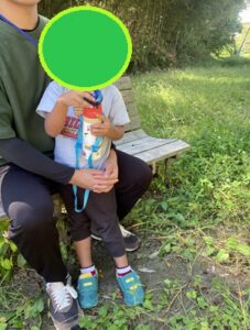 遊ぶ前に水分補給をするお友達!涼しくなっても油断は禁物です!水分は十分に取りましょう!