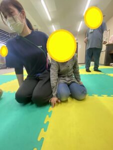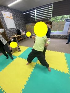 二人の息を合わせて立つこの運動。中々難しく、お子さんたちも大苦戦(;´Д`)