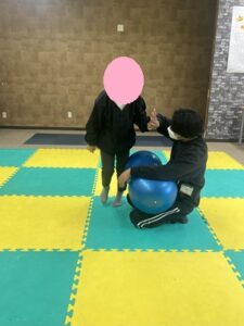 室内を色々見て回り、バランスボールで楽しそうに遊んでくれたお友達(*^-^*)