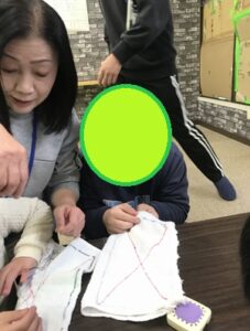 さて、今日は専門支援で雑巾縫いにみんなで挑戦しました(*^-^*)