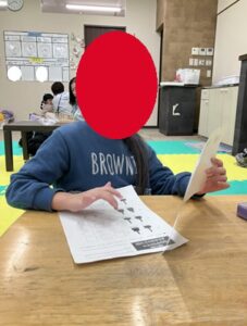 スタッフに教わりながら、一生懸命算数の問題に向き合います。
