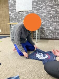 こちらのお友達は生活動作を獲得するために、洗濯物のたたむ練習!