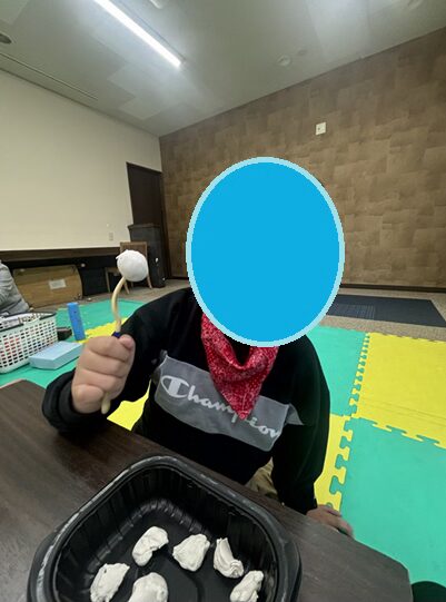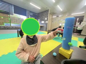 一つ一つ丁寧に乗せていきます。この課題も想像以上に難易度が高く、スプーンからスプーンへ乗っけるのがとても難しい!この課題は、ぶつからないようフェルトボールを乗せることによって空間把握能力が鍛えられたり、微細運動の強化にもつながっていきます!難しい課題でしたが最後まで一生懸命取り組んでいました!よく頑張りました!!