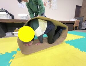 ダンボるの中に入り手足を使って少しずつ進んでいくお友達!