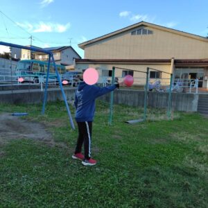 校庭へもお邪魔して、持参のボールでキャッチボールもしました。