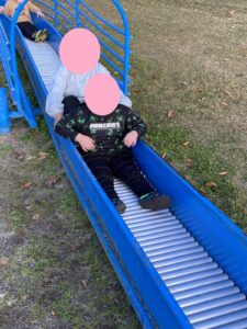 苦戦しながらも自力で登ることができ嬉しそうな表情も見れました!チャレンジ精神が素晴らしいですね😊