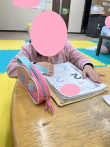 元気に入室しさっそく宿題に取り掛かるお友達。