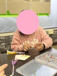 過去にも行っているので、とても上手にブレスレットをつくっていました。