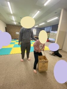 タイマーがなり次の活動が始まります!お片付けです!「おもーい!手伝ってー!」と言っていますがお友達はそっと背中を押してあげていました(*^-^*)ほのぼの(*’▽’)