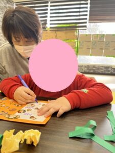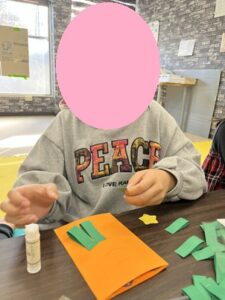 輪っこにした緑のパーツをカードの表紙に貼っていきます(*^-^*)