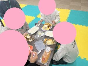 「何買ったの~?」とお友達のお弁当に興味を持ちながらも仲良く食べました♪