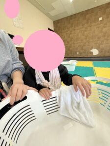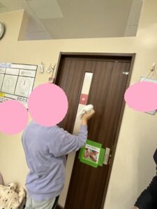雑巾がけのお友達に気を取られながらも、自分たちが使ってきたカゴを拭いてくれたり♪