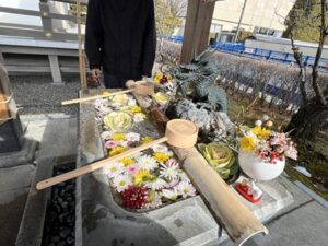 手水舎にはキレイなお花がたくさん浮かんでいて、とっても素敵でした(´▽`*)
