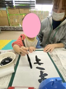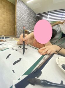 スタッフと名前を書いて見たり、自由に書初めを楽しみました💮
