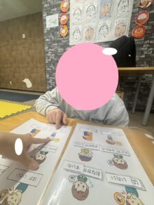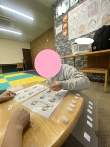 イラストと言葉のマッチングではお友達が理解しやすい方法に変え見本を見せながら文字を作る課題を行いました!