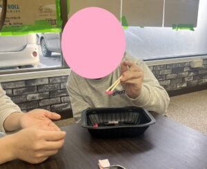 児童によって補助箸や割り箸と変えながら使いやすい物品にしたり持ち方を修正しながら掴む練習に挑戦!🔥