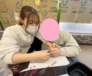 鉛筆を使用し手の使い方や指を固定した状態で動かしたりとアプローチしながらお友達にあったやり方を探しアプローチしています(‘ω’)ノ