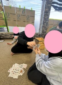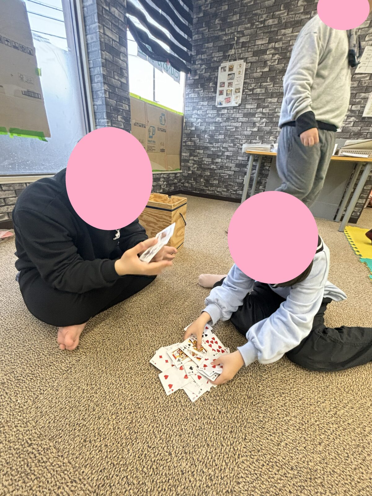 宿題が終わると「一緒にやろ!」とトランプを楽しんでいるお友達(^^♪