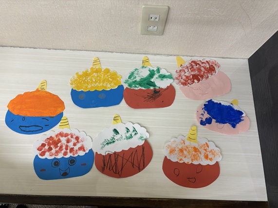 土曜日に来てくれたお友達が、工作でオニの顔を作りました!