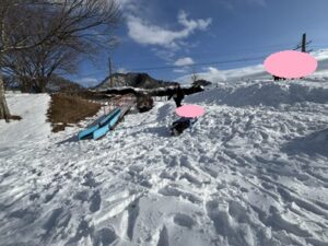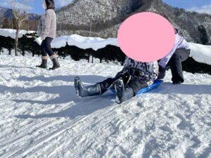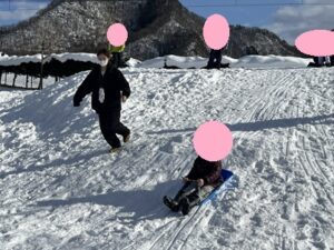 今度は二人乗りで「キャーキャー!」と何度も何度も繰り返して滑っていました♪