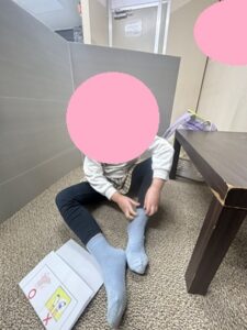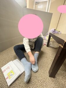 今日は靴下を履く!をやってみました!