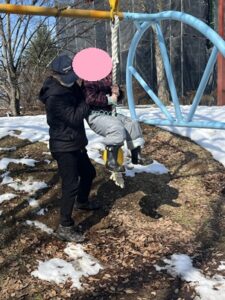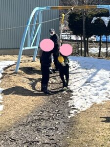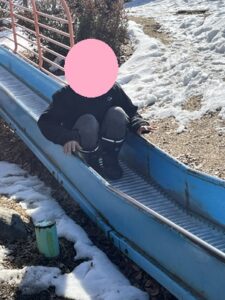 たくさんソリで滑った斜面も、雪が解け始めていてソリはもう無理かなぁ(>_<)
