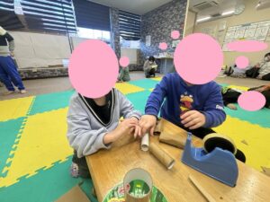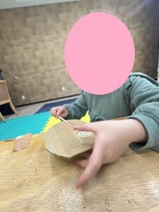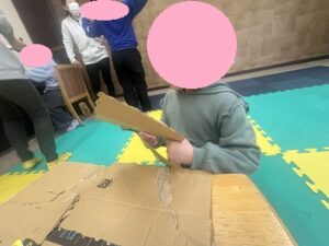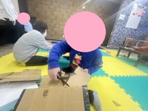 いつも自由な発想で段ボールを使い器用にいろんな物を作っているお友達です!今日はどんなものができるのでしょうか(・・?