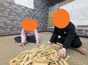お友達もドキドキしながら、1つ1つ丁寧に乗せていきます!崩れてしまった時は「あぁ~!」と悔しそうなお友達!また今度挑戦してみてください!