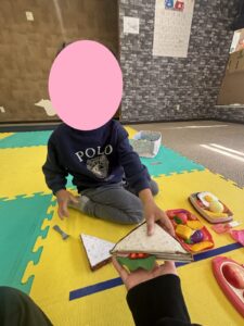 スタッフが言った物を取ったり渡してくれたりと物や言葉の意味の理解ができるように!