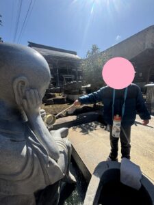 お地蔵さんにスタッフが水をかけているとお友達も真似してかけてくれました😊