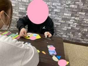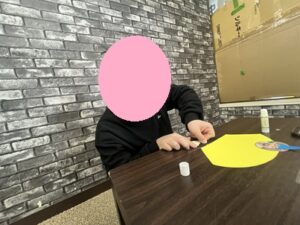 とても楽しそうに工作を進めていくお友達!お内裏様の顔が自分の顔になっているため、特別感があって愛着がわきますね!