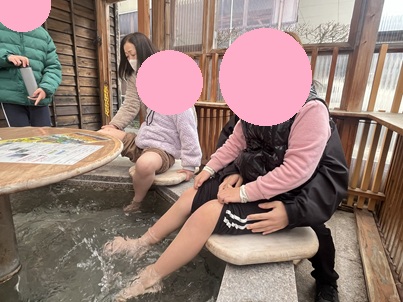足湯に入っている時は、みんなとっても落ち着いていて気持ちよさそうでした!