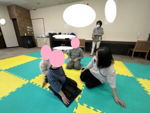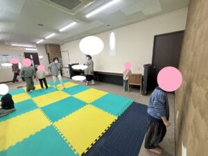 音楽が止まって座れないと悔しそうにするお友達も(^^;)それでもルールを守れみんなで楽しく活動できました👏