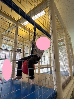 2階へ行き、室内のアスレチックで遊ぶお友達(*^-^*)