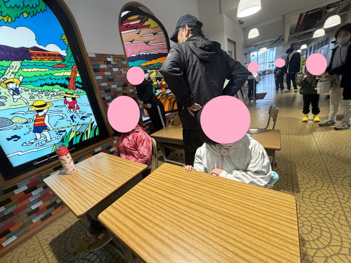 学校と同じ机と椅子にお友達も興味津々(^^♪座ってお勉強気分✎