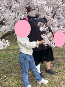 「触りた~い!」こっちでも桜に触ってみるお友達(*^-^*)