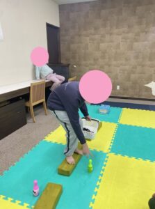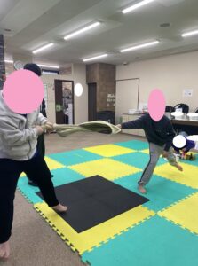 今日もみんなで楽しく運動遊びをしました!まだ今週の運動遊びをやったことがないお友達のために昨日一昨日ともうすでに何回か体験しているお友達がお手本になってくれました!ありがとうございます!とても助かりました!