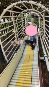 階段を上り、どこに行くのかと思ったら、お友達は好きな、ローラー滑り台で早速遊んでいました!ほかに利用しているお友達もいましたが、「まつよ」と声をかけると、滑らず待つことができていました!とっても偉かったです( *´艸`)